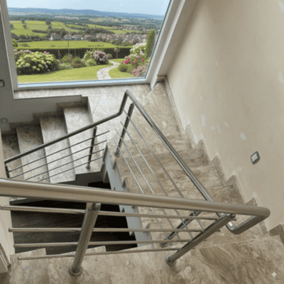 Aço inox de alta qualidade para um acabamento impecável. Corrimãos modernos e sofisticados para valorizar seu ambiente.